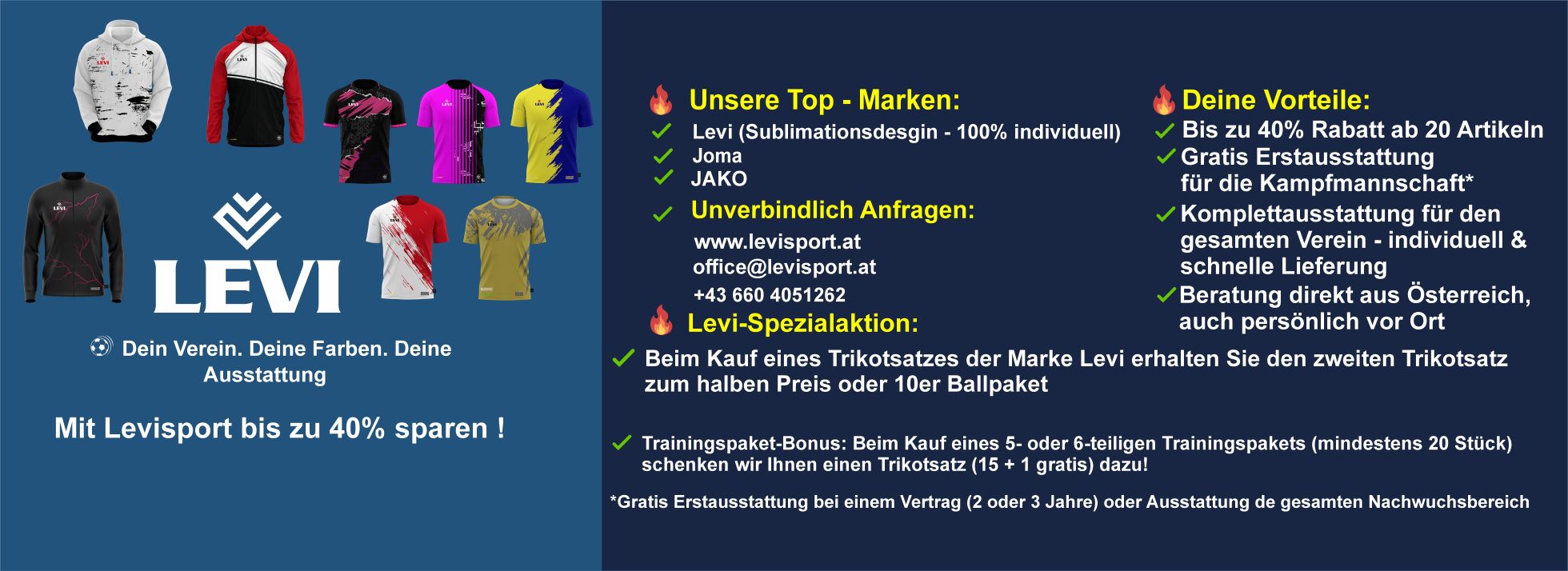 ✔ Kampfmannschaft gratis, wenn der gesamte Nachwuchsbereich ausgestattet wird (Trikots & Trainingsanzüge)